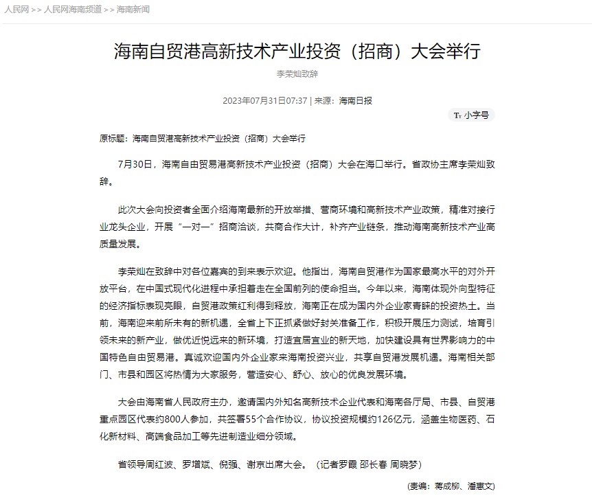 中霆世紀(jì)參加海南自貿(mào)港高新技術(shù)產(chǎn)業(yè)投資(招商)大會(huì)